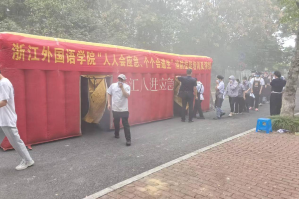 随后,全体人员进行了消防逃生屋及灭火器正确使用的实操演练。